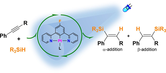 Visible light harvesting alkyne hydrosilylation mediated by pincer platinum complexes.